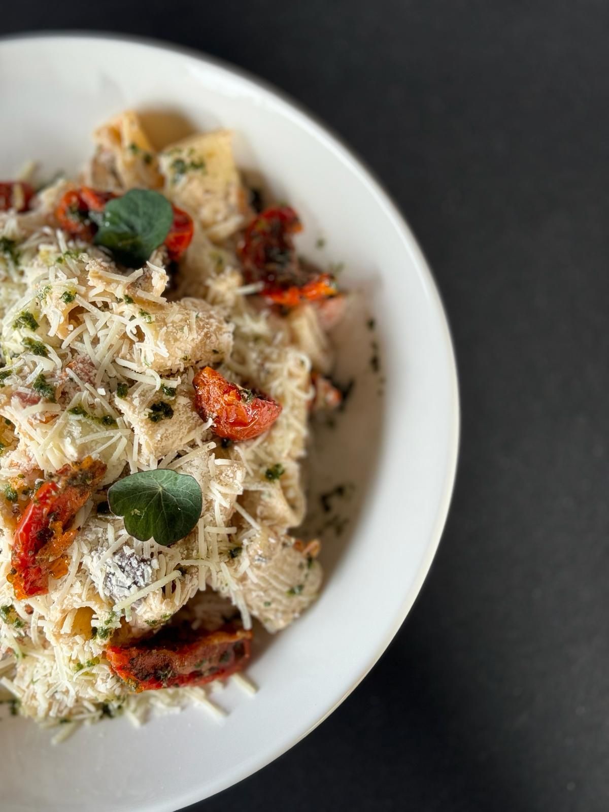 Pasta salade | truffel | parmezaan | paddenstoelen | zongedroogde tomaat | croutons | rucola